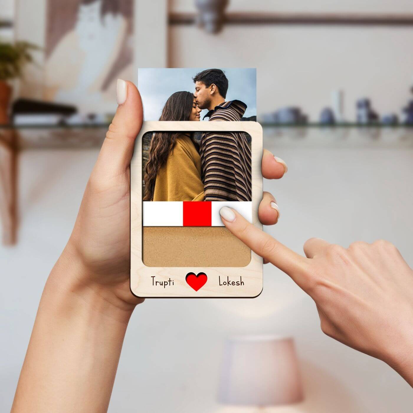 Wooden Personalized Couple Fridge Magnet With Photo Frame