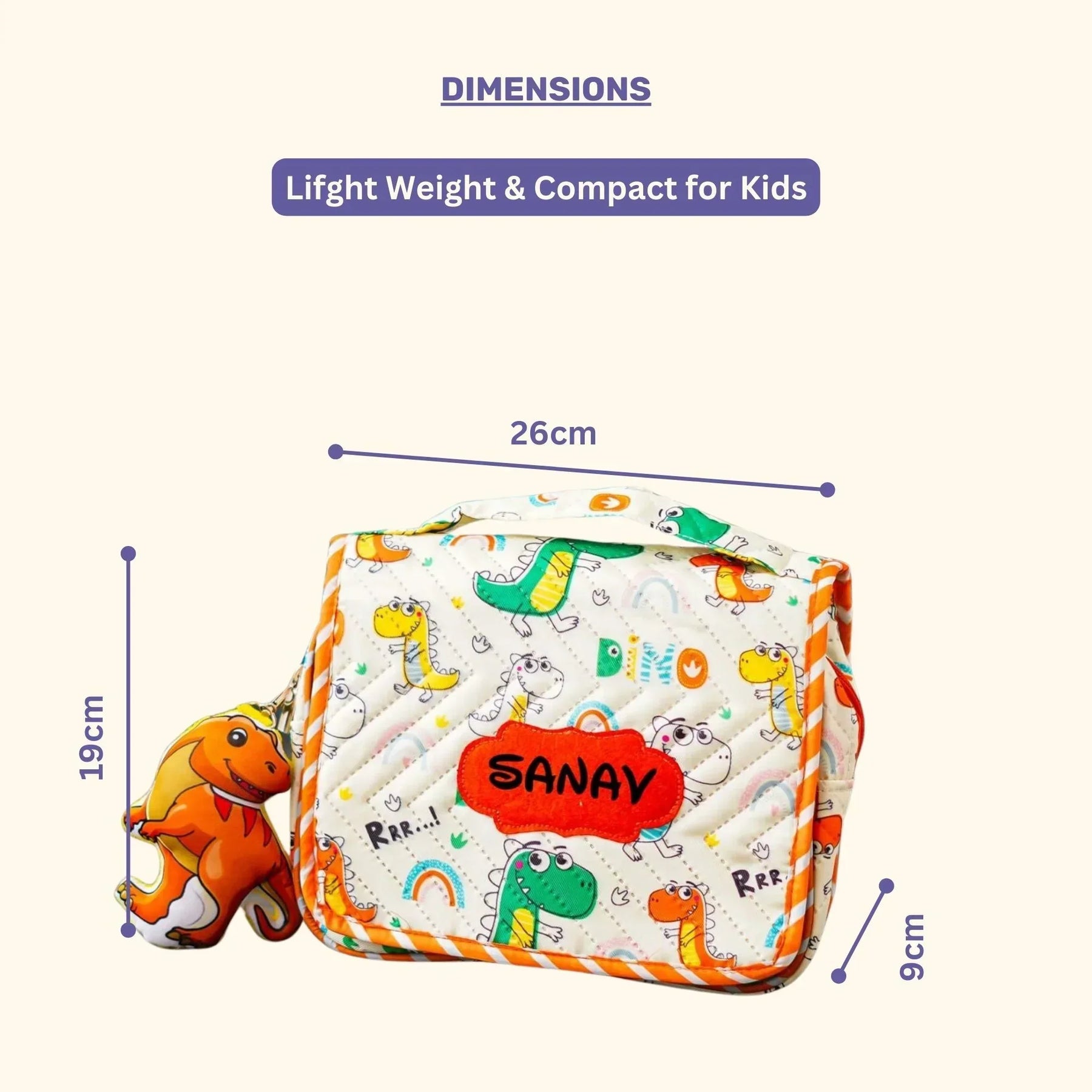 The Roar-Some Dinosaur Print Multipurpose Travel Kit for Kids is the perfect companion for little adventurers! Featuring a fun and vibrant dinosaur design, this travel kit keeps all your child's essentials organized. With multiple compartments for toiletries, snacks, toys, and more, it’s perfect for trips, school, or daily outings. Lightweight and durable, this kit is easy for kids to carry and ensures everything stays in place while on the go. Let your child travel in style with this playful and practical kit!