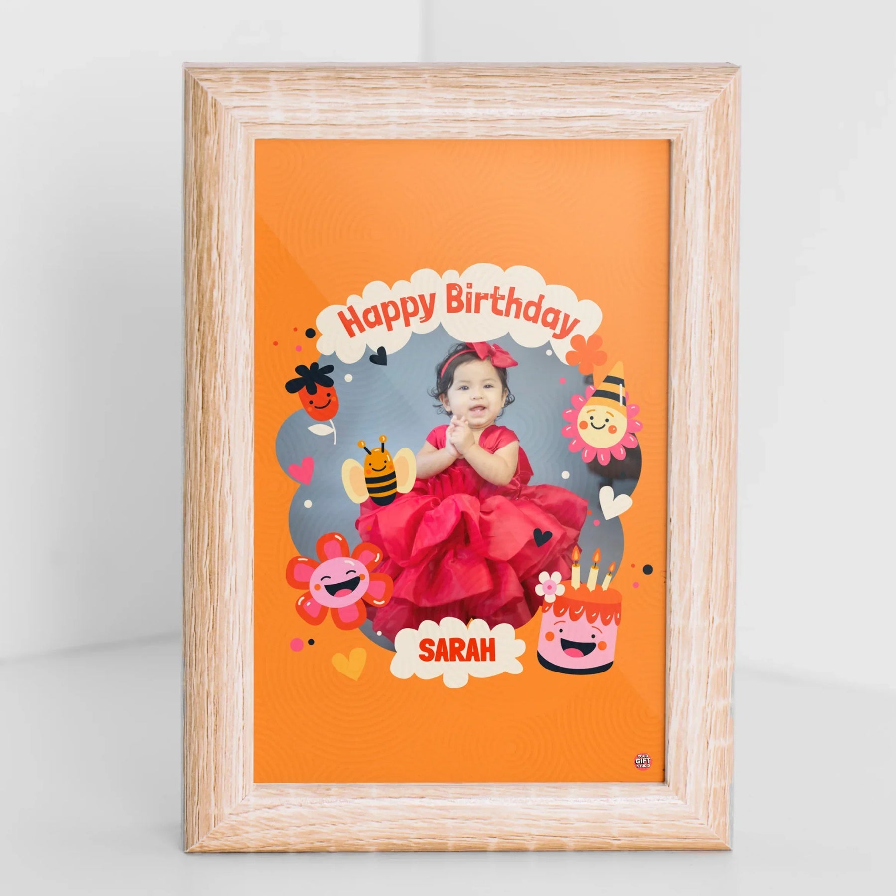 The "YOUR GIFT STUDIO Happy Birthday Baby Frame 1.0" is a charming and heartwarming keepsake designed to celebrate the special day of a little one. Crafted with love and attention to detail, this frame features a playful and colorful design, perfect for showcasing a precious birthday photo. Whether it’s for a newborn, toddler, or young child, this frame captures the joy and innocence of their first years. Made from high-quality materials, it ensures durability and timelessness, making it a memorable gift for birthdays, christenings, or any milestone moment. A beautiful way to preserve and cherish those early memories.